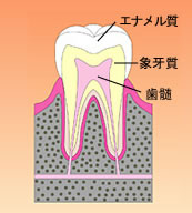虫歯とは、虫歯を作る細菌が、甘いものを原料にして、酸を作り、歯を溶かして穴を開けたものです。