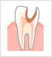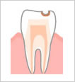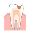 歯のエナメル質を通過して、中間層の象牙質まで穴が開いたものです。この段階でも、はじめのうちは、痛みを感じません。しかし、進むにつれて、まず冷水痛やチョコレートなどの甘いもので痛みを感じるようになります。虫歯は徐々に進行しますから、痛みを感じなくなったからといって、放置するのはきわめて危険です。