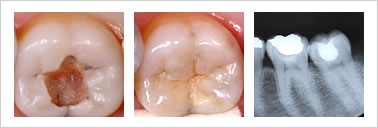歯の一番外側のエナメル質に穴が開いたものです。ほとんどの歯は削らないでフッ素塗布をし、様子を見ます。C1でもはっきりと穴が開いたものについては、悪いところだけ削って、詰め物をします。